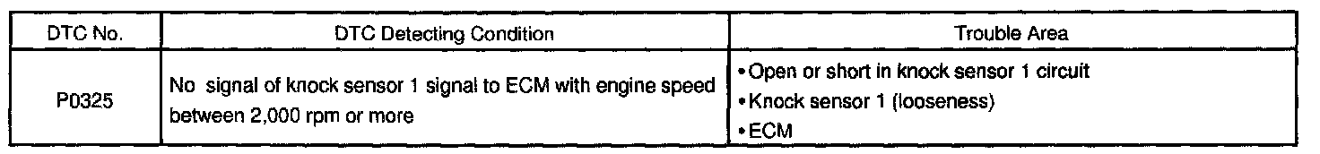 DTC P0325 Knock Sensor 1 Circuit (Bank 1 or Single Sensor)CIRCUIT DESCRIPTION