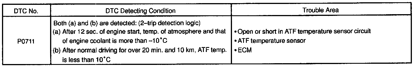 DTC P0711 Transmission Fluid Temperature Sesor "A" performanceCIRCUIT DESCRIPTION
