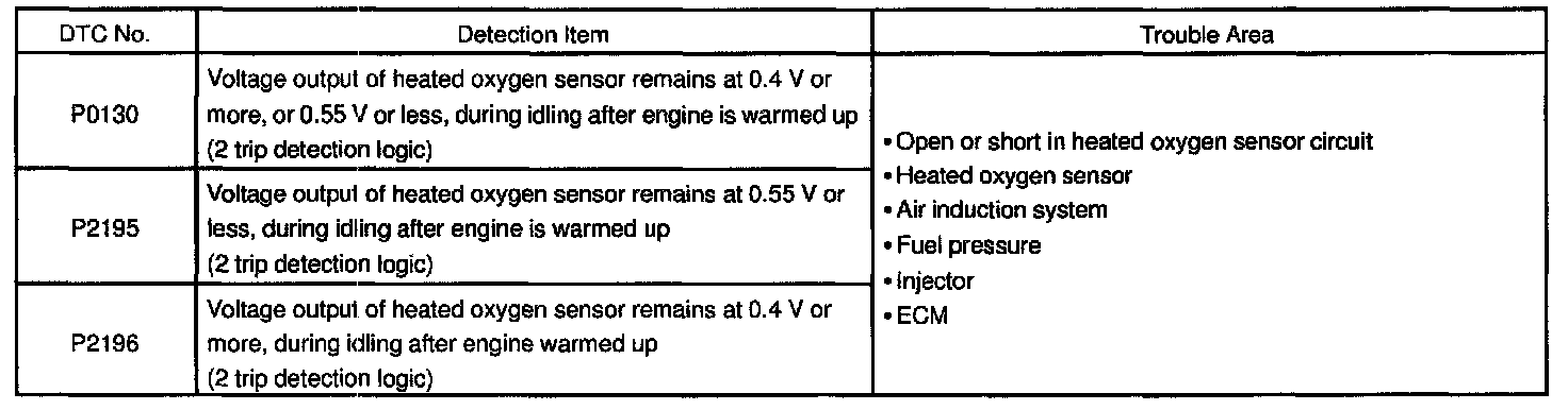 DTC P2196 Oxygen Sensor Signal Stuck Rich (Bank 1 Sensor 1)CIRCUIT DESCRIPTION