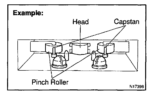 b. Using a cleaning pen or cotton applicator soaked in cleaner, clean the head surface, pinch rollers and capstans.