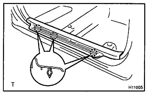 Remove the 2 clips and rear floor finish plate.