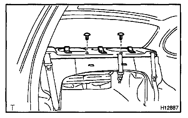 b. Remove the rear seat belts through the cutout on the package tray trim.