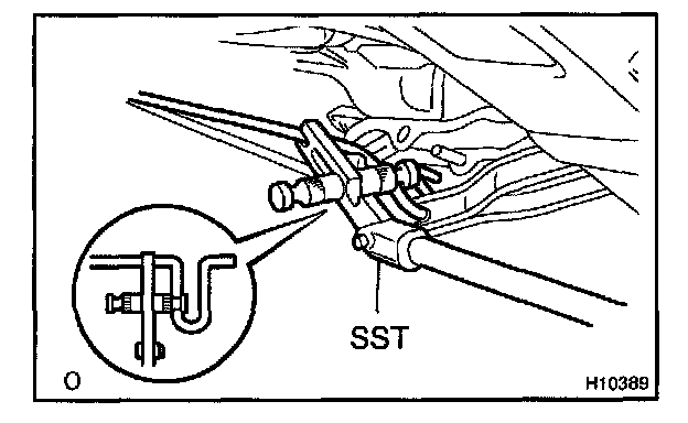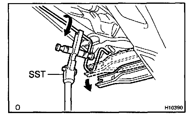 d. Slowly lift SST, and remove the torsion bar from the torsion bar bracket with SST.