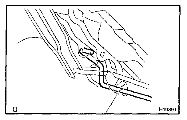 c. Push down on SST, and pull the luggage compartment door hinge from the torsion bar.