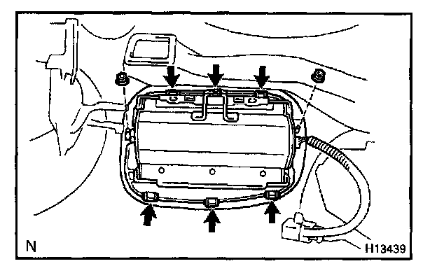 NOTE: When removing the front passenger airbag assembly, take care not to damage the wire harness.