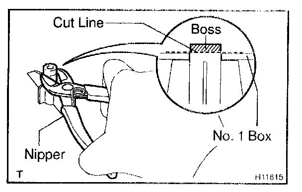 a. Cut off the boss using a nipper to make the level of the surface equal to the No. 1 box.