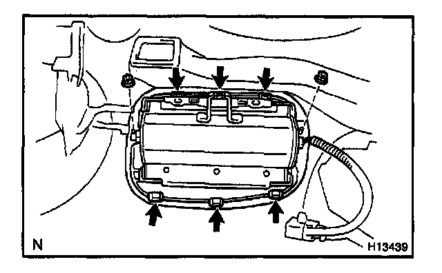 b. Pry up the 6 clips shown in the illustration.