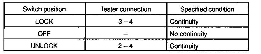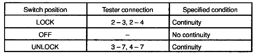 INSPECT DOOR KEY LOCK AND UNLOCK SWITCH CONTINUITY