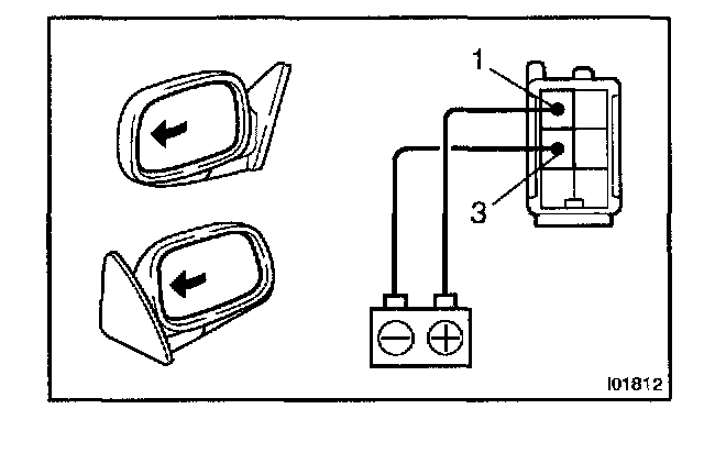 a. Connect the positive (+) lead from the battery to terminal 3 and the negative (-) lead to terminal 1, and check that the mirror turns right side.