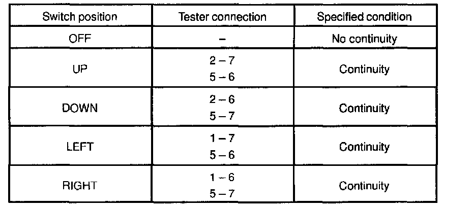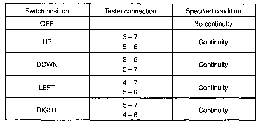 1. INSPECT MIRROR SWITCH CONTINUITY