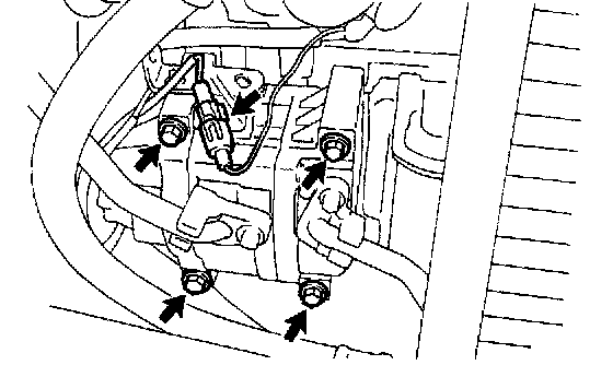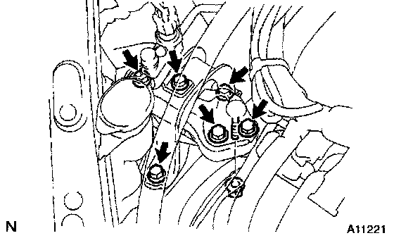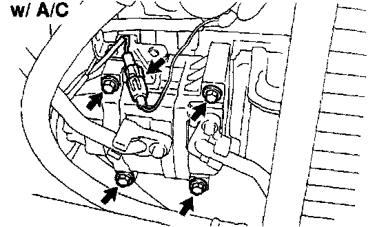 b) Remove the 4 bolts, and disconnect the A/C compressor from the engine.