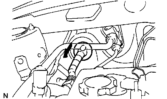 c) Remove the bolt holding the liquid tube to the RH engine mounting insulator.