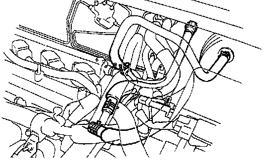 e) Disconnect the heater hose from water hose union on cylinder head.