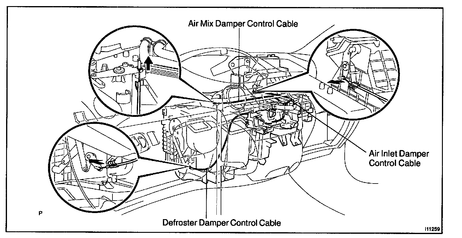 e. Adjust air mix control cable.