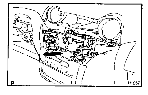 c. Fit the 2 claws of heater control assembly in the instrument panel hole.