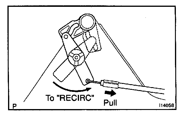 Set air inlet damper control lever to "RECIRC" position and connect the inner cable to lever pin and clamp the outer cable.