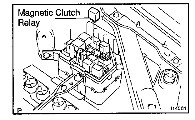 1. REMOVE MAGNETIC CLUTCH RELAY (Marking: A/C MG) FROM ENGINE ROOM RELAY BLOCK