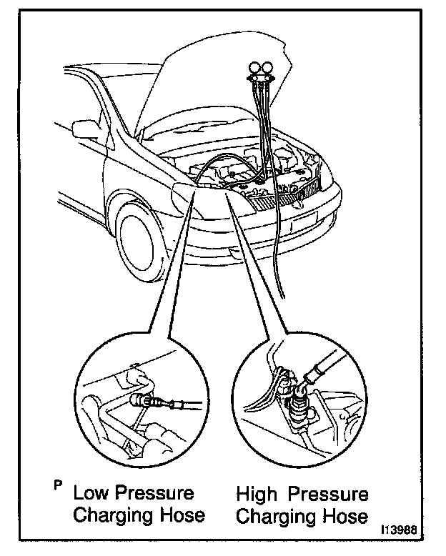1. CONNECT CHARGE HOSE TO MANIFOLD GAUGE SET