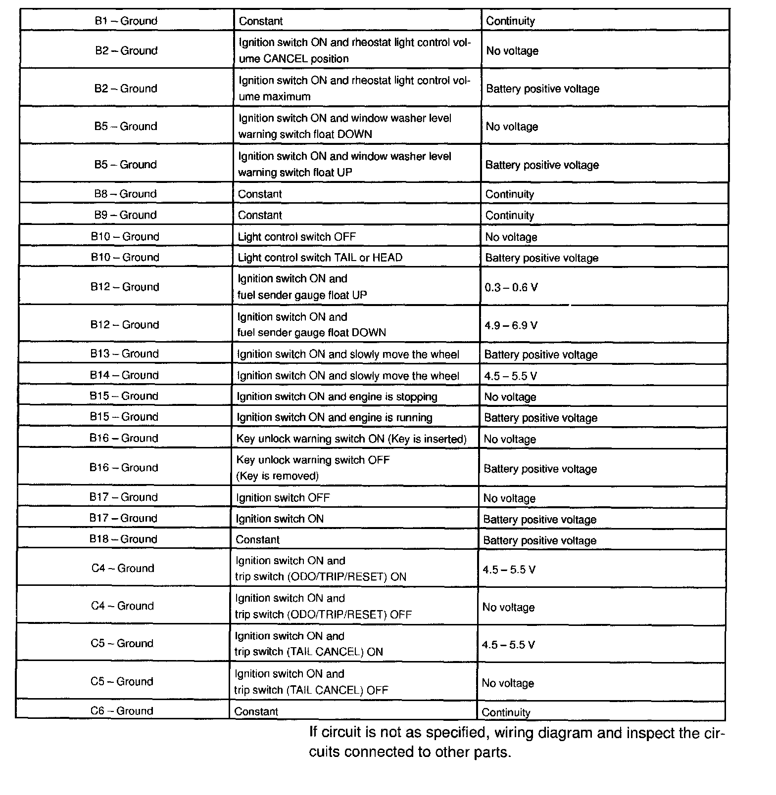 If circuit is not as specified, wiring diagram and inspect the circuits connected to other parts