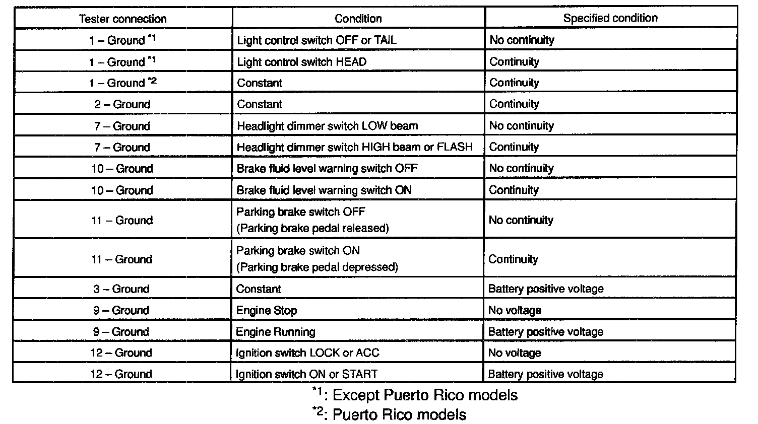 INSPECT TAILLIGHT CONTROL RELAY CONTINUITY