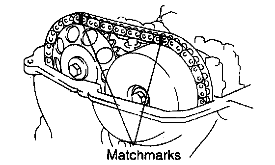 w) Check that the matchmarks on the timing chain and camshaft timing sprockets.