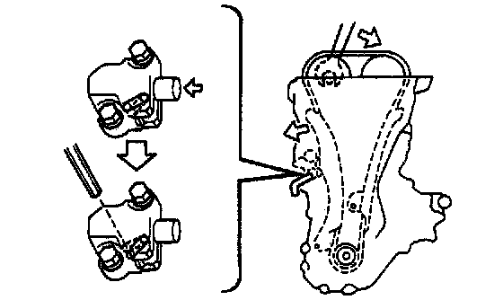 u) Remove the bar from the timing chain tensioner.