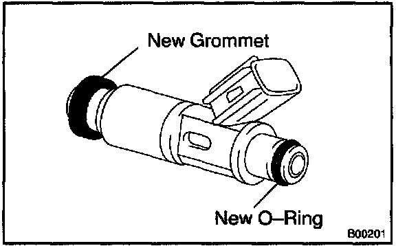a. Install a new grommet to each injector.