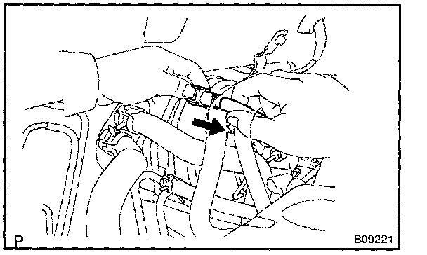 2. Get the metallic connector of the fuel tube assembly, pull it out towards the rear and hold it as it is.