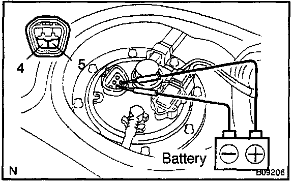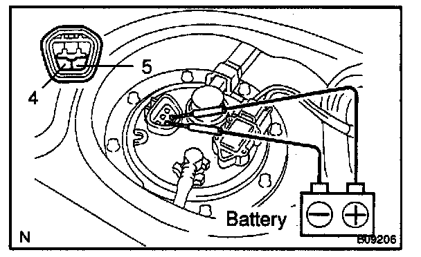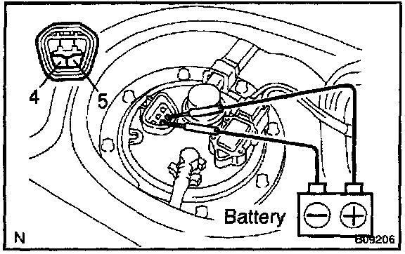 Connect the positive (+) lead from the battery to terminal 4 of the connector and the negative (-) terminal 5. Check that the pump operates.