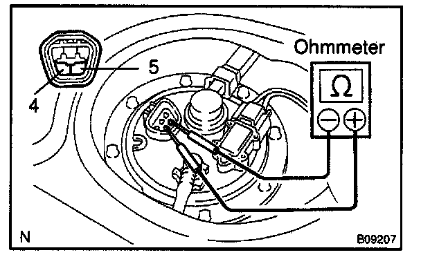 If the resistance is not as specified, replace the fuel pump.