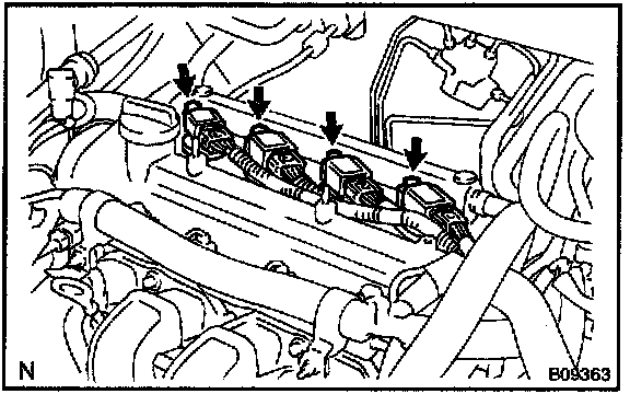 2. DISCONNECT 4 IGNITION COIL CONNECTORS
