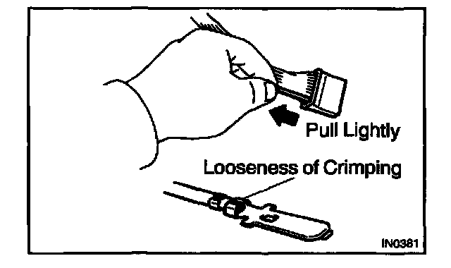 c. Check crimped portions for looseness or damage and check that the terminals are secured in lock portion.