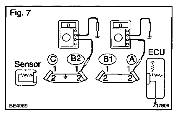 1. Disconnect connectors "A" and "C" and measure the resistance between them.