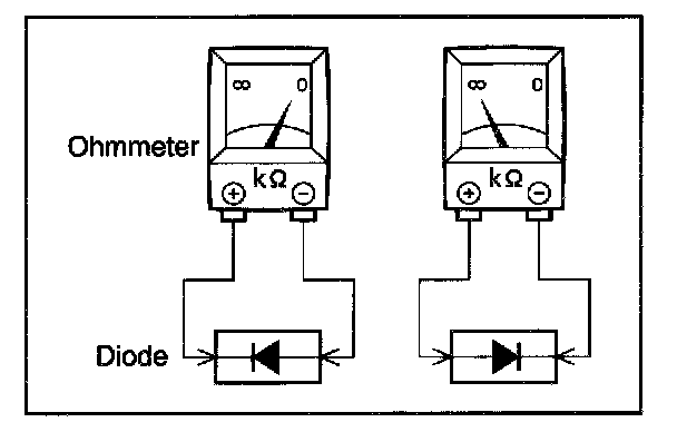 When contacting the negative lead to the diode positive side and the positive lead to the negative side, there should be continuity.