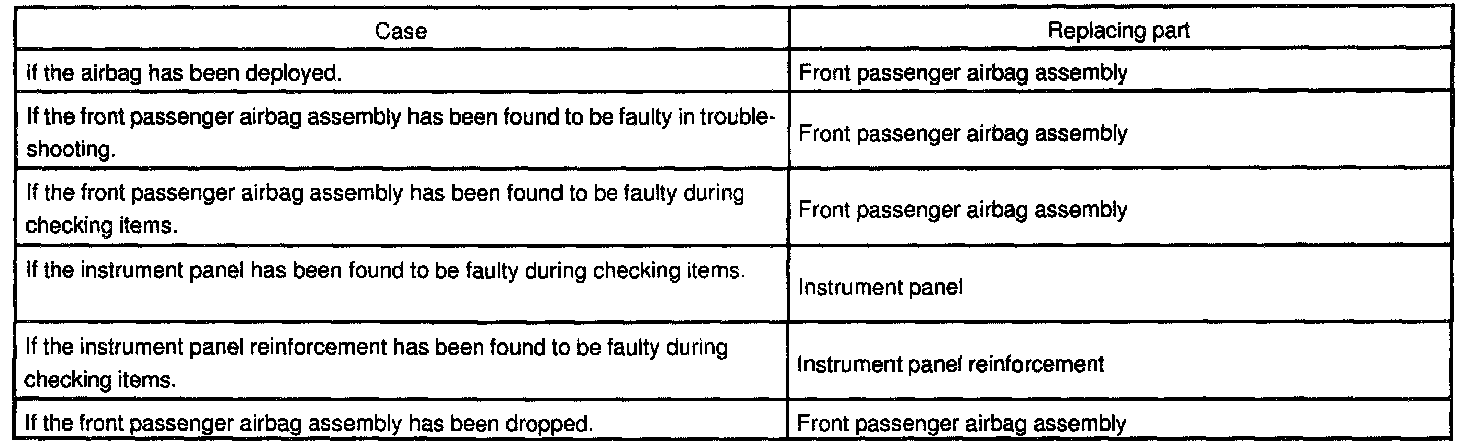 REPLACEMENTIn the following cases, replace the front passenger airbag assembly, instrument panel or instrument panel reinforcement