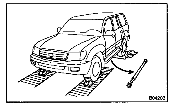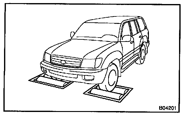 When carrying out any kind of servicing or testing on a Full-time 4WD with Vehicle Skid Control (VSC) & Traction Control (TRAC) system in which the front or rear wheels are to be rotated (braking test, speedometer test), be sure to observe the precautions given below.