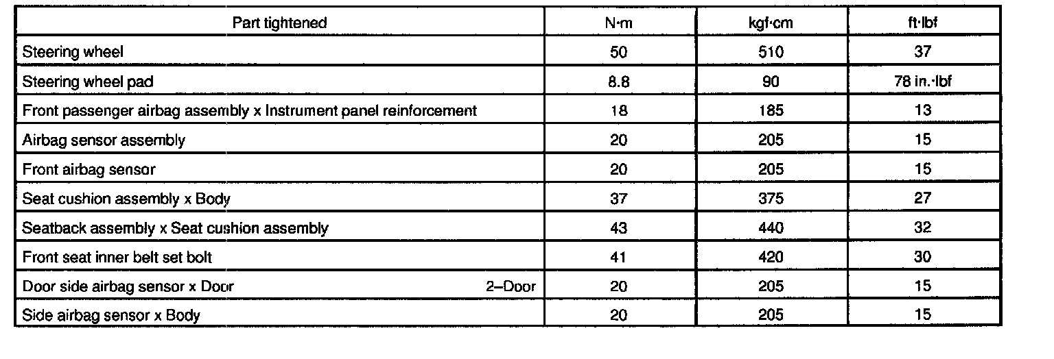 Supplemental Restraint System - Torque Specification: