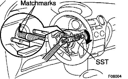 b. Place matchmarks on the steering wheel and main shaft assembly.