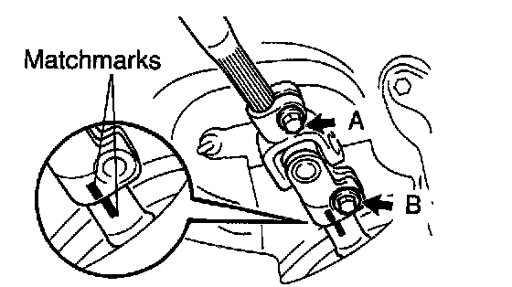 b. Loosen the bolt A and remove the bolt B, then disconnect the sliding yoke.