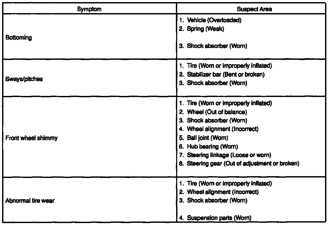 PROBLEM SYMPTOMS TABLE