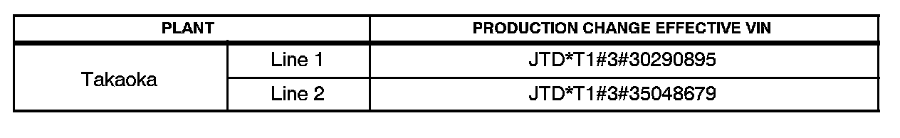 ^ 2000 - 2003 model year ECHO vehicles produced BEFORE the Production Change Effective VINs shown below.
