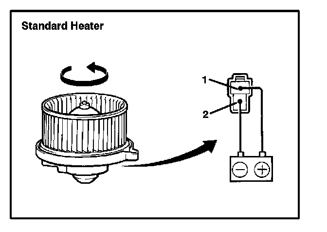 Connect the positive (+) lead from the battery to terminal 1 and the negative (-) lead to terminal 2. Then check that the motor operates smoothly.