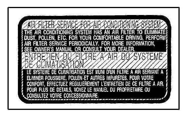 11. Attach A/C Filter Label. Adhere the A/C Filter Label to the backside of the glove compartment door.