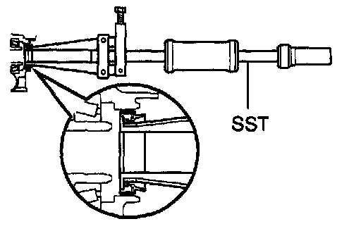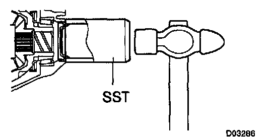 a) Using SST and a hammer, drive in a new oil seal.