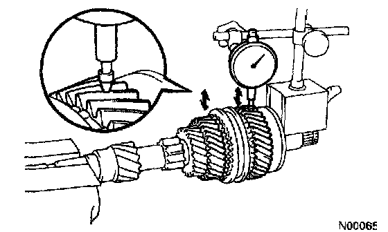 Using a dial indicator, measure the radial clearance between the gear and shaft.