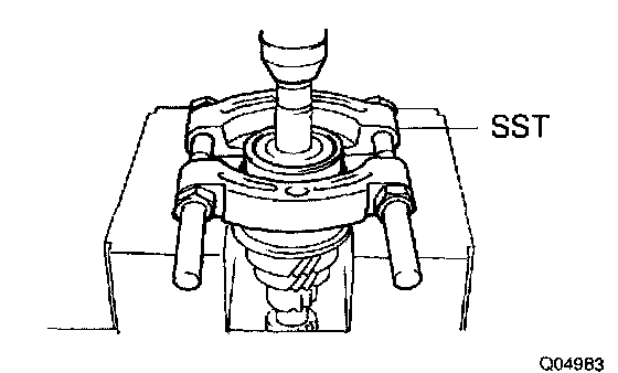 a) Using SST and a press, remove the rear ball bearing and 4th gear.