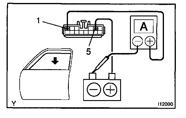 b. Connect the positive (+) lead from the ammeter to terminal 1 on the wire harness side connector and the negative (-) lead to negative terminal of the battery.
