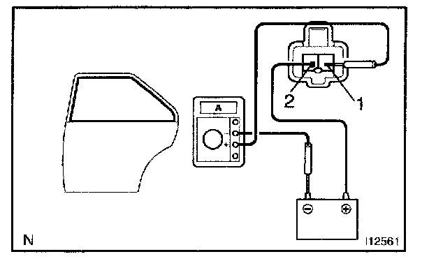 b. Connect the positive (+) lead from the ammeter to terminal 2 on the wire harness side connector and the negative (-) lead to negative terminal of the battery.