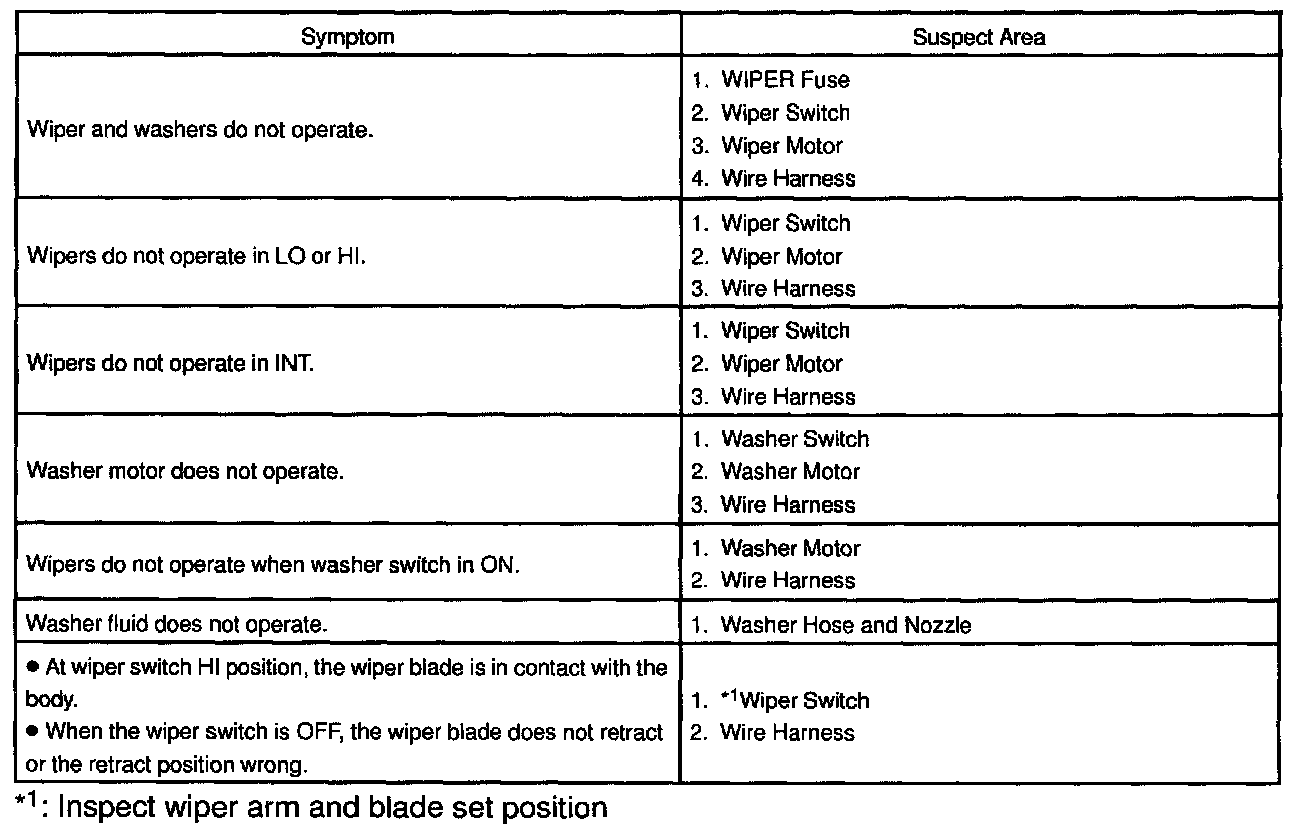 Problem Symptoms Table - Wiper And Washer System:
