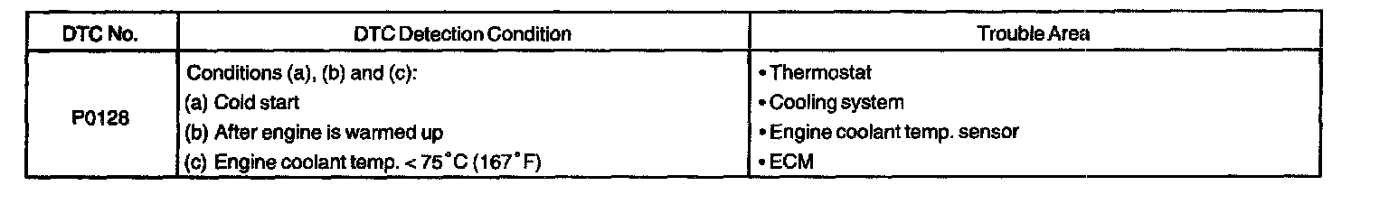 DTC P0128 COOLANT THERMOSTAT (COOLANT TEMP. BELOW THERMOSTAT REGULATING TEMP)CIRCUIT DESCRIPTION